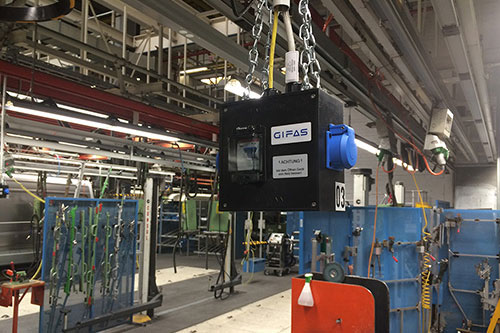 Der Kunde benötigt einen integrierten FI, somit hat GIFAS eine spezifische Lösung eines deckenhängenden Gummiverteilers angeboten, der folgende Vorteile bietet:
