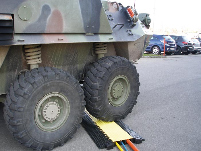 Protect your cable cross-overs with cable protection systems from GIFAS and avoid accidents and damage. The yellow warning colour on the cover and the structured anti-slip surface provide additional safety. Safety and tidiness, whether it be for temporary or permanent cabling, interior or exterior applications.The hinged cover remains vertical when the cable is inserted and can be quickly and easily closed securely via the integrated Velcro fastening system. The cable protection elements can be connected with each other using tenons. The cable protectors feature the patented, self-cleaning locking hinge.
