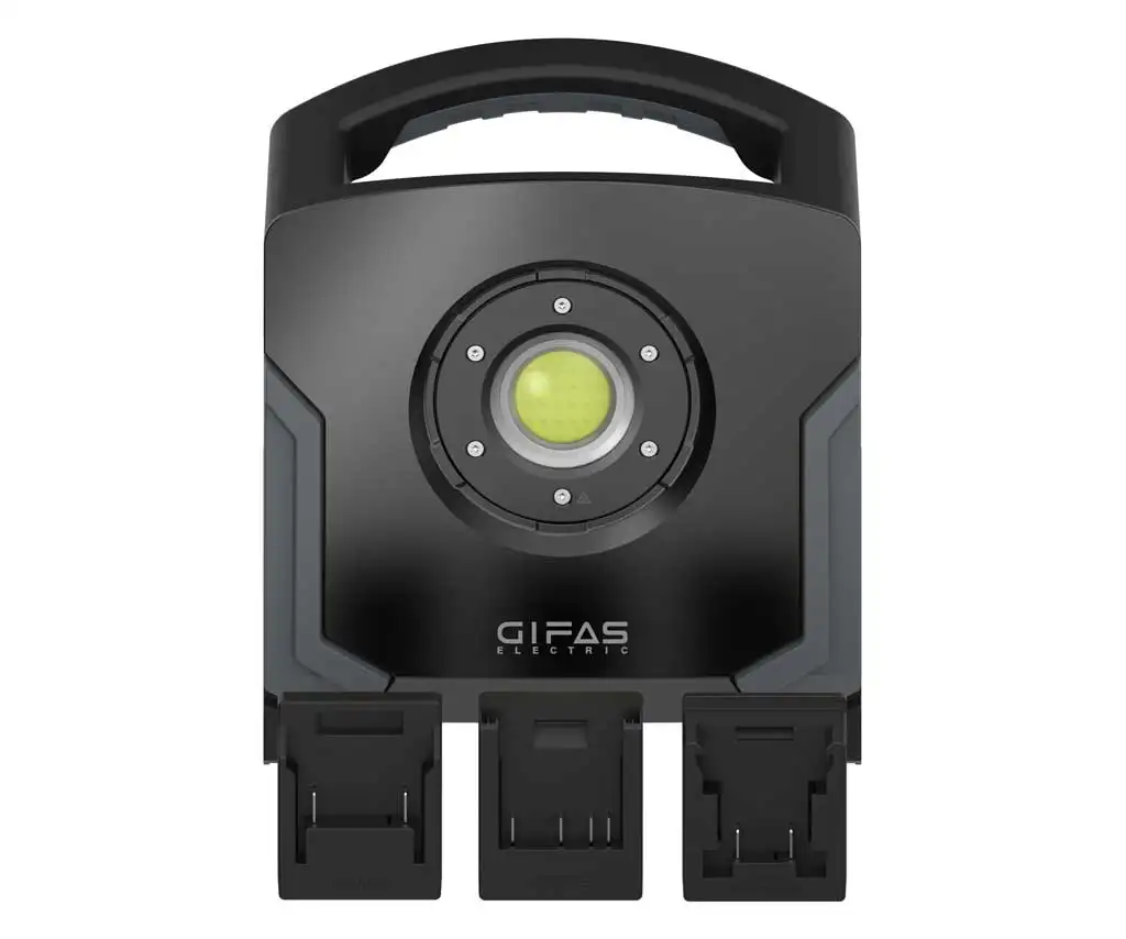 Besonders praktisch: Der Strahler kann flexibel sowohl mit Netzstrom als auch mit einem 18V-Akku betrieben werden. Drei mitgelieferten Adapterplatten machen kompatibel mit gängigen Akkusystemen von Bosch, Makita sowie Milwaukee und DeWalt. Damit bleibt man unabhängig und flexibel – perfekt für den Einsatz auf Baustellen, in Werkstätten oder industriellen Umgebungen.